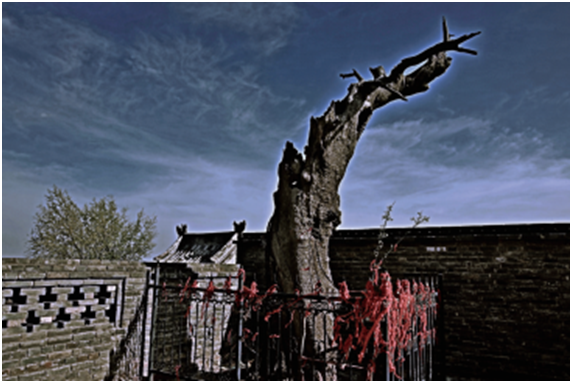 相传帝尧时代,有一年天灾地旱,河床干涸。太阳像个火球,火辣辣地悬挂在天空中,向外散发着灼灼的热气。就连仅剩的一丝遮蔽的云彩,也在烈阳下渐渐退去。大地被太阳烤成了焦土,田野里的庄稼也在无力地挣扎,焦急的人们日日夜夜等着一场大雨的到来。后来村里有名望的族长提议,去仙翁庙烧香拜仙,祈求神灵保佑。善男信女们用了大把纸钱、馒头、点心,虔诚祈祷。但是祈求了多日,毒辣的太阳照样挂在天空,没有一丁点变化。族长认为大家诚心不够,没有感化了神仙,仍不放弃心中那种最原始的“追求”,每天依然到仙翁庙里焚香叩拜,一跪就是一天。一日,晴朗的天空,突然风起云涌,天色昏暗、雷鸣电闪,片片乌云黑压压仿佛要压下来,刺眼的闪电像银蛇一样在空中穿梭着,轰隆隆的雷声震耳欲聋。顷刻间,雨柱漫天垂挂,抛向这块渴雨如金的土地。庙里看庙的道士说,是村民们的虔诚感动了张果老和九天圣母,他们邀请龙王帮忙下的大雨。他刚才还看到一条青龙朝这边飞来,盘在庙院里的那棵松树上。村民们欢呼雀跃,感激涕零,认为仙翁庙就是灵验,真给老百姓聚来福气了!雨过后,田地湿润了,小河水满了,村里的树全绿了。人们惊奇地发现,青龙盘绕过的那棵松,树枝树冠都酷似神龙,人们就叫它盘龙松。
