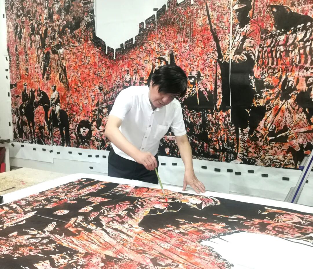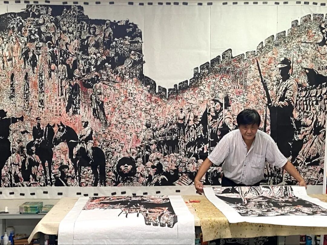 这个暑假期间,阴佳教授不畏酷暑、冒着高温赶印,每一道刻痕都是对先烈的致敬,每一抹油墨都是对和平的承诺,作为教育工作者,阴佳教授通过作品搭建了一座座桥梁,让更多的年轻人从艺术中触摸历史的温度,从历史中汲取前行的力量。