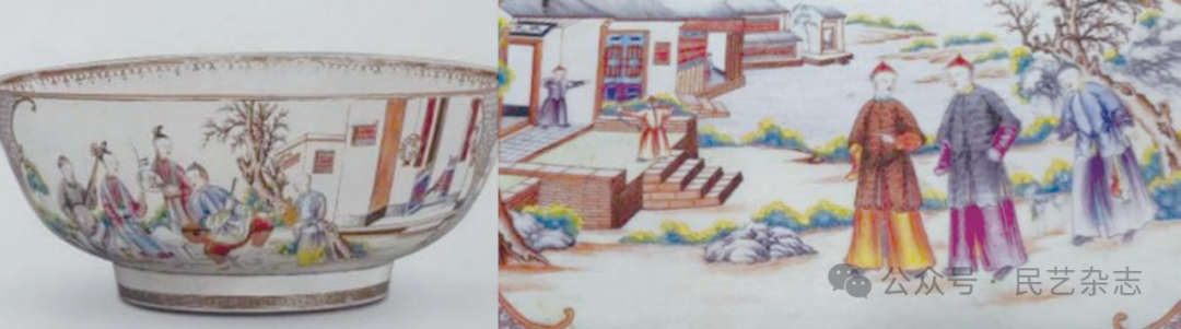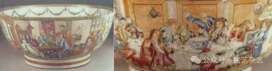图5 广彩中西人物喝酒图大碗 图片来源:余春明《中国名片:明清外销瓷探源与收藏》