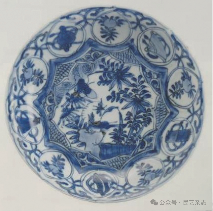 图1 (明)万历 青花开光花鸟图盘 采自上海博物馆编《中欧陶瓷与文化交流特集》