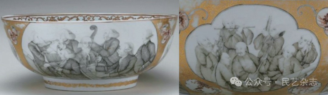 图8 广彩描金墨彩中西演奏图大碗 图片来源:Metropolitan Museum of Art官网