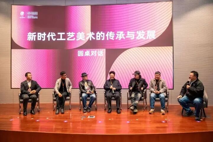 在圆桌论坛环节,中国工艺美术学会设计专委会副主任、中国装饰杂志社主编方晓风,中国工艺美术学会设计专委会名誉主任、同济大学设计艺术研究中心主任林家阳,中国工艺美术学会设计专委会副主任、北京师范大学未来设计学院院长高鹏,中国工艺美术学会设计专委会副主任、澳门大学人文学院教授周洪涛,中国工艺美术学会设计专委会副主任、中央美术学院教授周博,中国工艺美术学会设计专委会副主任、中国美术学院创新设计学院院长段卫斌,中国工艺美术学会设计专委会副主任、华侨大学工业设计研究院院长杨学太等专家学者围绕 “新时代工艺美术的传承与发展”主题,结合各自实践分享观点、交流见解,为工艺美术与设计的融合发展提供了多元思路和建设性意见。专家学者一致认为,工艺美术的当代转型需要在守正创新的基础上,强化设计驱动、科技赋能与文化赋能,推动传统工艺从静态保护走向活态传承,真正实现艺术价值与生活价值的统一。