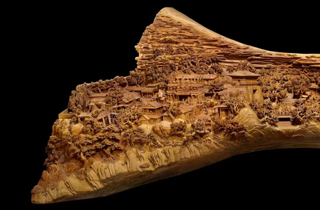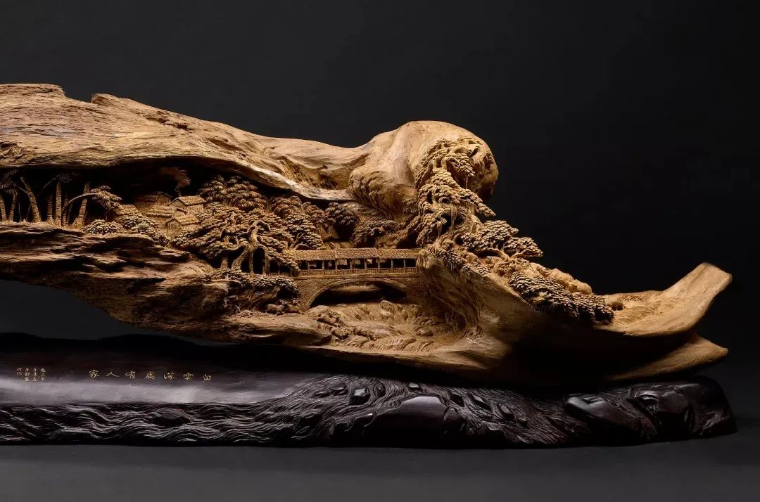 郑春辉作品 沉香雕刻《桃花源》