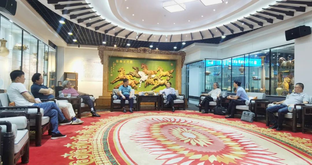 图 中国工艺美术学会秘书长毛增印、中国工艺美术学会竹工艺专业委员会主任黄学敏与东阳市市场监督管理局总工程师陈君梁商讨竞赛事宜