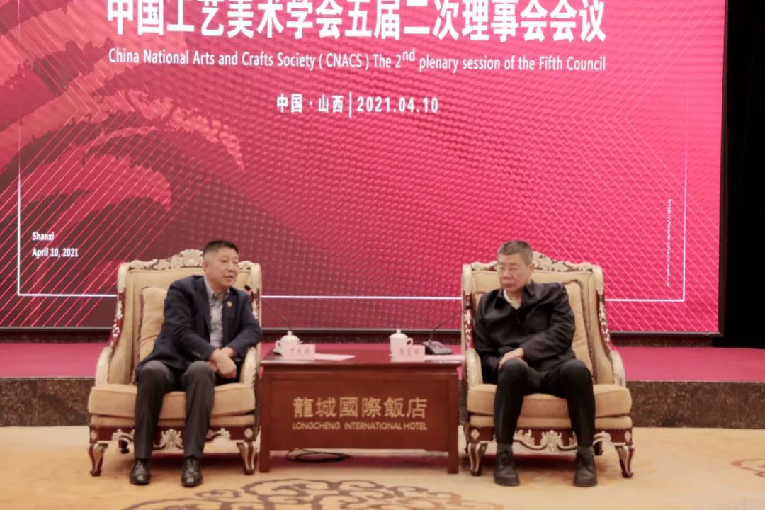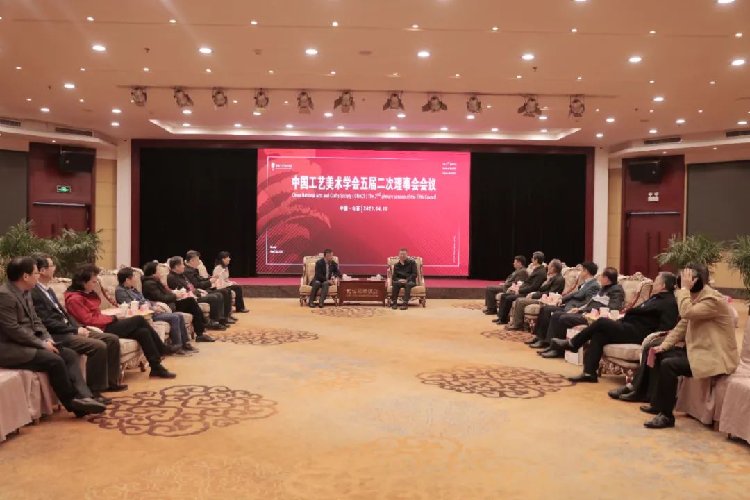 中国工艺美术学会五届二次理事会暨五届二次常务理事会(以下简称大会)于2021年4月10日在山西太原隆重召开。中国工艺美术学会理事会成员、监事会成员、各分支机构主要负责人、会员代表等近170人相聚一堂,共商工艺美术行业发展之路。活动由山西省文旅厅指导,山西工美产业联盟承办。