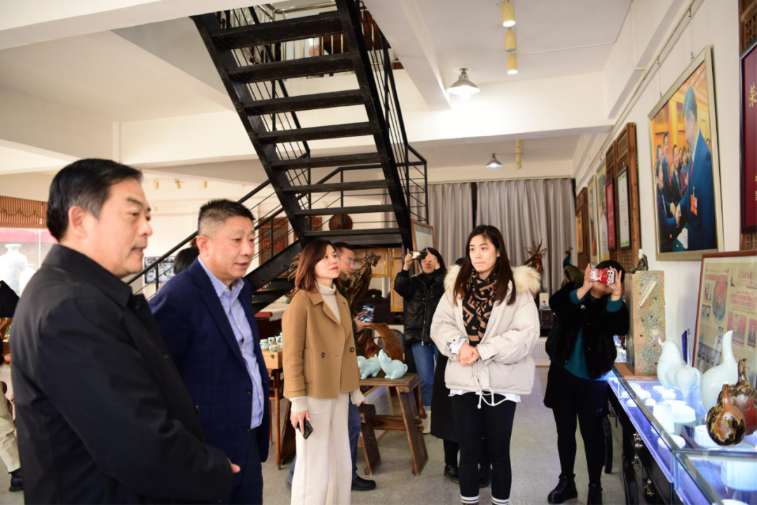 调研组一行对中国工艺美术大师王一君大师工作室进行了调研,认真观看了王一君大师的代表作,并对王一君大师获得”全国劳动模范“称号表示祝贺。