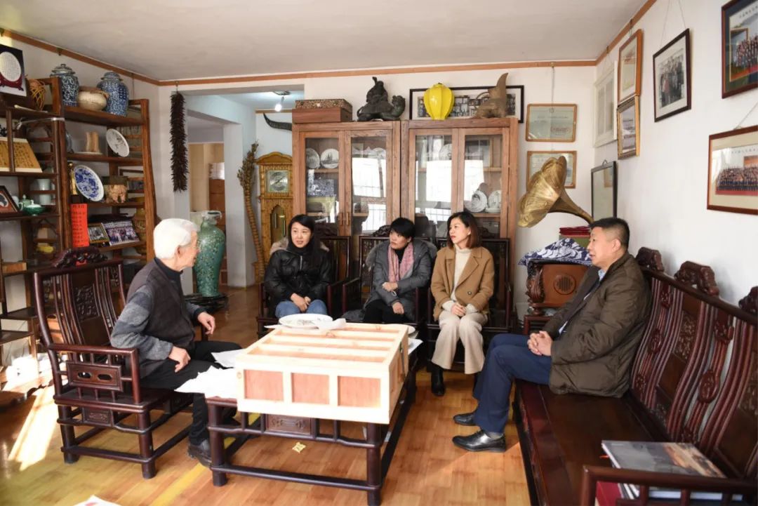 才大颖一行首先到中国工艺美术大师张明文家里探望年近80的大师,才大颖理事长与张大师就工艺美术创作进行了沟通和交流,并听取了他对工艺美术行业发展的意见和建议。张明文大师的”艺随当代“的创作观点更是代表了老一辈工艺美术大师的情怀和担当,值得年轻技艺人员们学习。