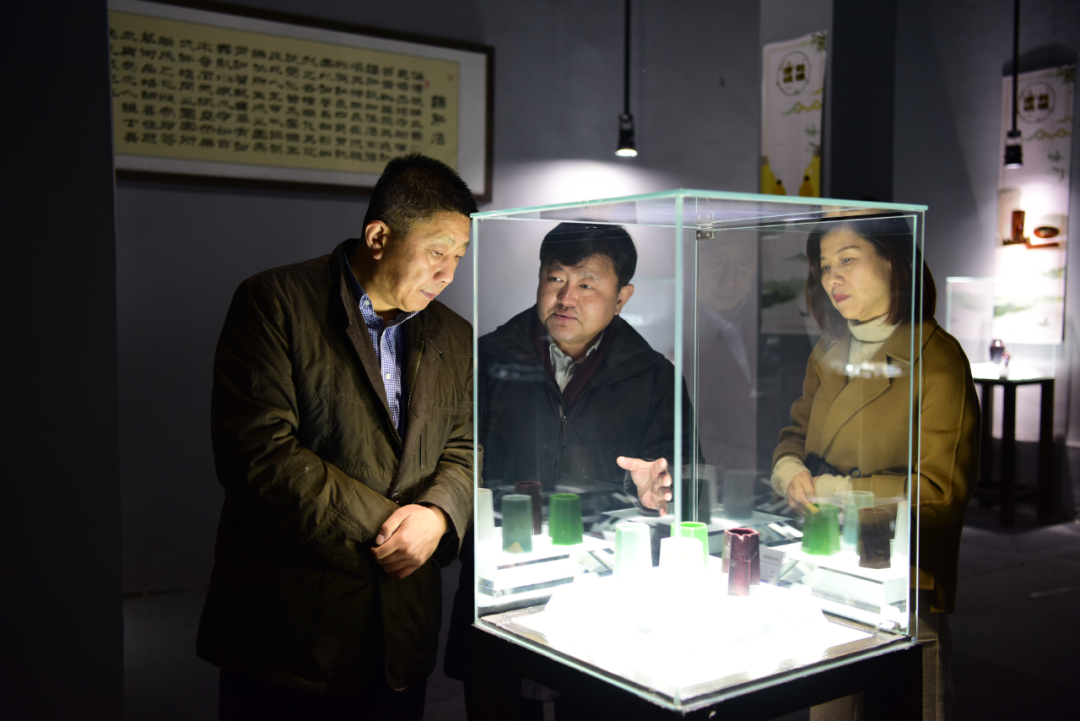 随后,才大颖一行人来到中国工艺美术大师王孝诚工作室,王孝诚大师详细地向才大颖一行介绍了鲁派鼻烟壶产业发展的历史和现状,并对博山鼻烟壶内画产业发展提出了很多好的建议,表达出王孝诚大师对鼻烟壶行业的热爱和对我们未来工作的殷切期望。中国工艺美术大师王一君大师工作室