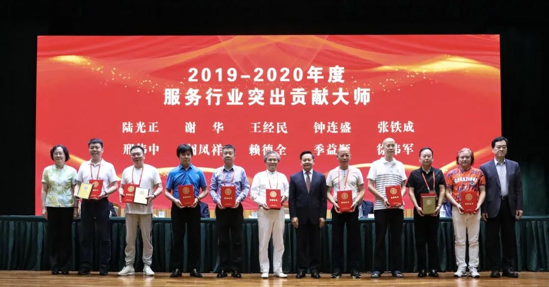 会上,2019-2020年度服务行业突出贡献大师代表赖德全,“百名大师进校园活动”优秀基地院校代表、湖南工艺美术职业学院院长陈鸿俊,“百名大师进校园活动”优秀大师代表陈水琴,工艺美术重点产区代表、泉州市城镇集体工业联合社副主任蔡文雄,山西省文化和旅游厅二级调研员王延沪做典型交流发言。
