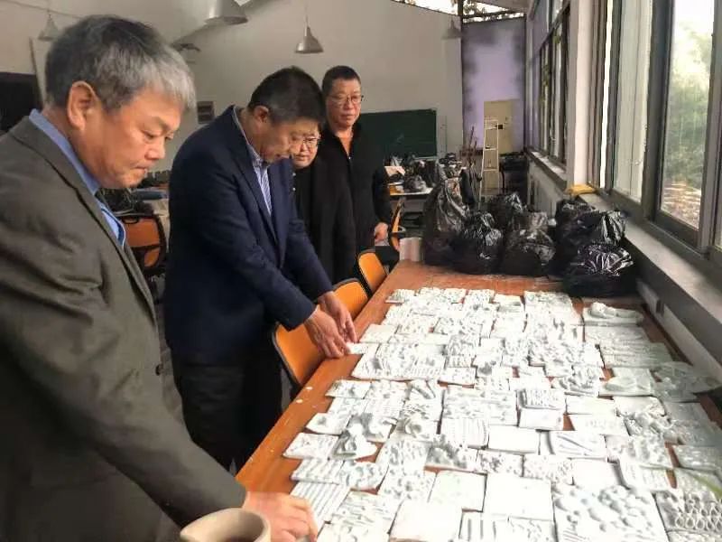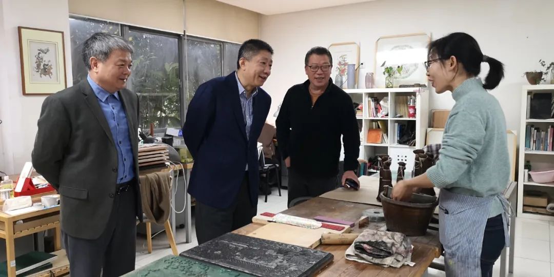 座谈结束后 ,才大颖会长考察了桃花坞木刻年画社,学院手工艺术学院雕刻、首饰、刺绣等实训工作室,学院美术馆的藏品陈列。