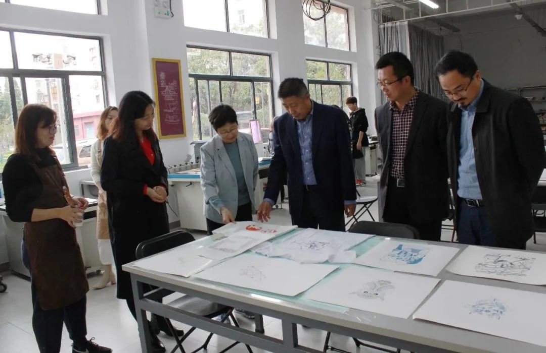 才理事长听取了吴学敏书记的学校情况汇报,尤其是从轻工部南京机电学校升格为南京工业职业技术学院20年的奋斗历程。对学校升格后,有关学校发展方向、人才培养定位、职教特色的彰显、示范引领作用发挥,进行了深入的研讨。吴学敏书记陪同参观了仙林校区。下午,才理事长到位于南京秦淮区光华路的南工天堂校区,调研学校艺术设计学院的办学情况,学校副书记苏小冬陪同。艺术设计学院孔伟院长介绍了学院的专业布局和发展方向。陪同参观了艺术工坊一楼学生进行技术技能培训的第一课堂,VR实验实训中心、造物工坊、印物工坊、手作工坊等;二楼传承优秀传统文化大师工作室的第二课堂,非遗大师工作室、国务院双创平台实验实验中心;参观了閤一艺术展览馆的师生作品展和理实一体化教室。才大颖理事长与艺术设计学院教师、学生、特聘非遗大师进行了亲切交流,并围绕“非遗文化的创新发展、文创产品的继承创造、IP文化的打造开发”等方面进行了深入探讨。对学校艺术设计学院的教学方法、双创实绩、办学成效给予了充分肯定。对艺术设计学院本科职业教育专业建设、服务社会给予直接指导,希望学院今后在教学科研、实验实训、社会服务、文化传承创新中能进一步立足本土文化资源,创新发展,加强政校企行深度合作,不断推进实用艺术和传统艺术的协调发展,跨界协同,齐头并进,助推工艺美术行业再上新台阶、再创新佳绩、再谋新发展。