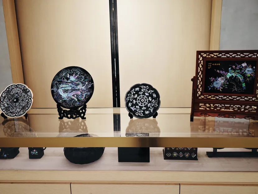 现场展出的工艺美术作品。