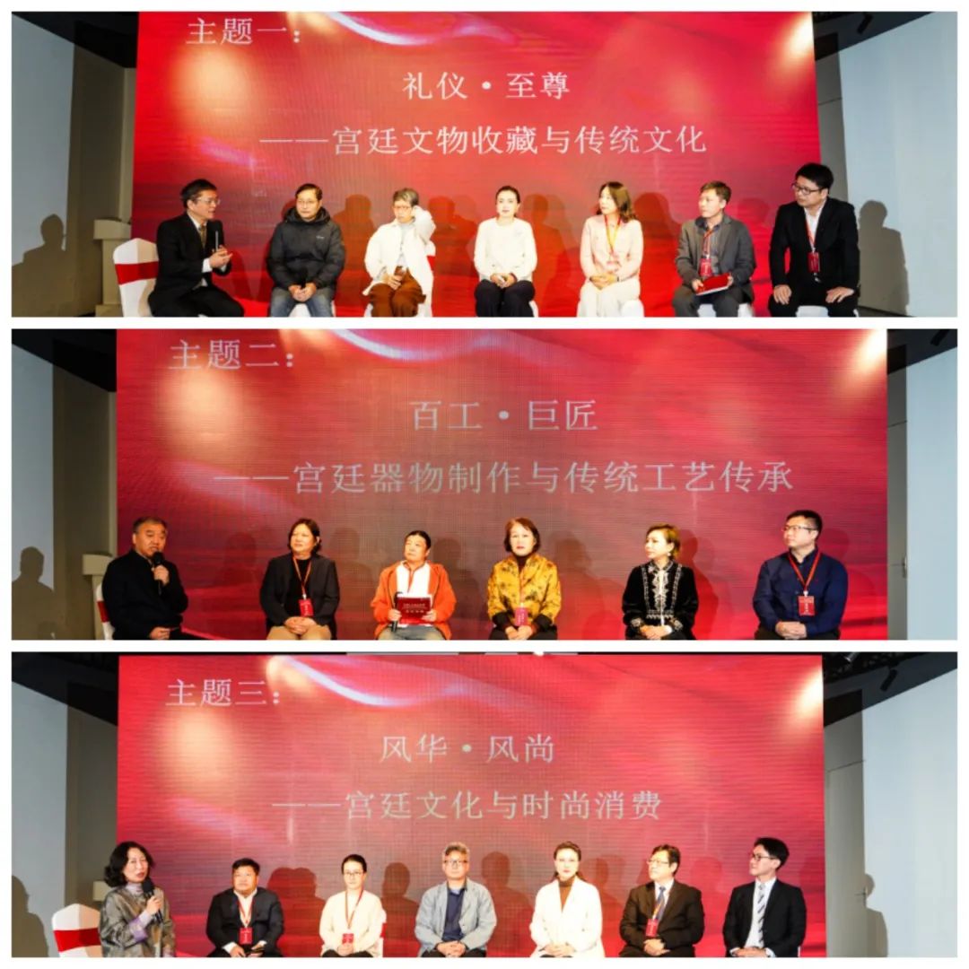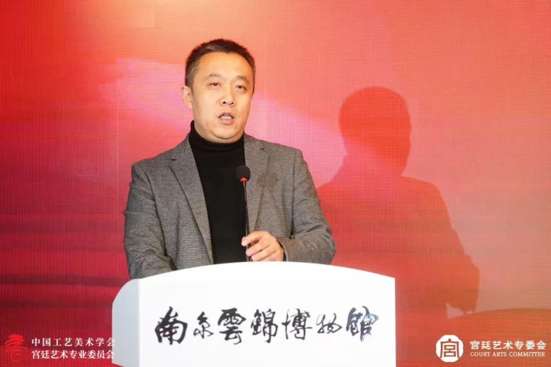 才大颖、简名伟共同为“中国工艺美术学会游学基地专业类教育—云锦技艺”揭牌。宫廷艺术专委会顾问严勇,代表宫廷艺术品收藏单位、收藏家发言。宫廷艺术专委会常务副主任兼秘书长柏群,代表宫廷艺术传承、创新单位发言。宫廷艺术专委会常务副主任毕红主持首届宫廷艺术传承与创新发展研讨会。与会专家学者,围绕“礼仪·至尊——宫廷文物收藏与传统文化”“百工·巨匠——宫廷器物制作与传统工艺传承”“风华·风尚——宫廷文化与时尚消费”等议题展开研讨。中国工艺美术学会宫廷艺术专委会副秘书长、北京燕京八绝博物馆艺术总监张志伟主持会议。
