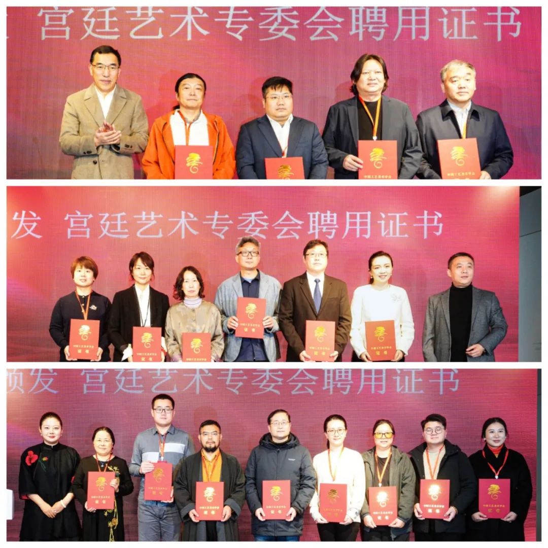 中国工艺美术学会宫廷艺术专委会主任李理、常务副主任兼秘书长柏群、常务副主任毕红,分别为专委会副主任、副秘书长、执行委员、委员代表颁发聘书。