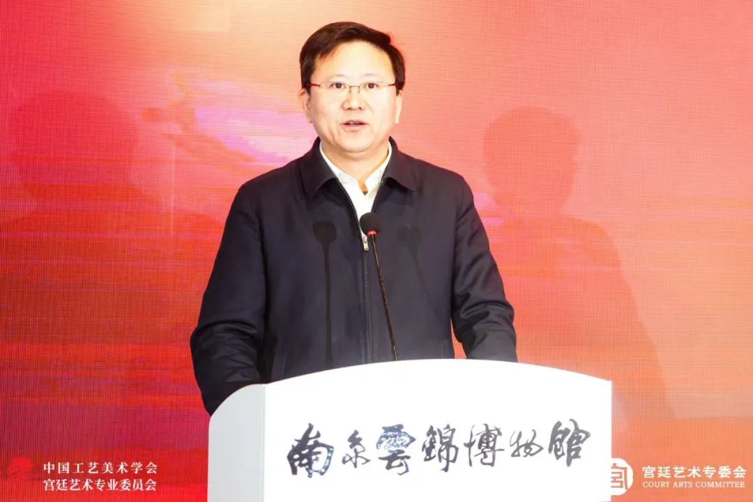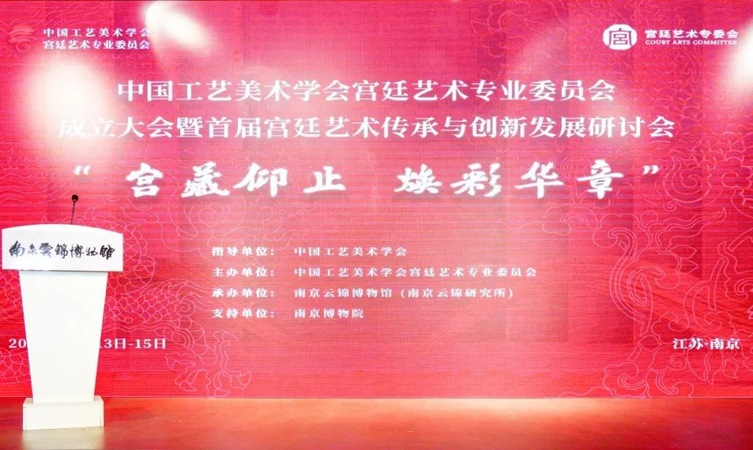 2024年12月14日,“宫藏仰止、焕彩华章”——中国工艺美术学会宫廷艺术专业委员会成立大会暨首届宫廷艺术传承与创新发展研讨会在江苏南京隆重举行。中国工艺美术学会党委书记、理事长才大颖出席并做主题发言。出席开幕式并致辞的嘉宾还有江苏省文化和旅游厅副厅长钱钢,中共南京市建邺区区委书记姜宸,中国工艺美术学会常务理事、织锦专委会主任、南京云锦博物馆馆长简名伟,江苏省工艺美术行业协会会长于广云。大会由中国工艺美术学会宫廷艺术专委会副秘书长、北京燕京八绝博物馆艺术总监张志伟主持。