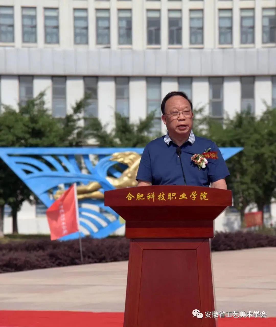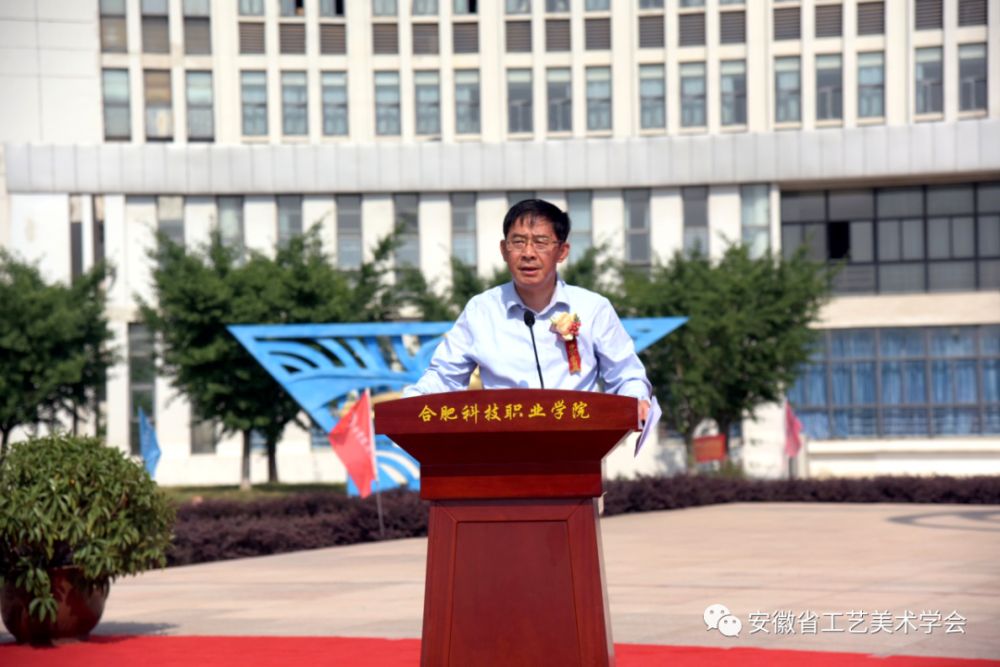 安徽省工艺美术学会理事长、安徽省雕塑研究院院长郭宝安致开幕词。他表示,我国的工艺美术具有悠久的历史和辉煌的成就,是中华文明的重要组成部分。当前,党和国家重视中华优秀传统文化的传承与发展,提出振兴传统工艺,工艺美术迎来了发展的良好机遇,打造大国工匠、培育工匠精神已经成为社会共识。活动主要围绕工艺美术“进校园”和弘扬传统文化等方面开展科普教育,推进了工艺美术文化与职业教育有机结合,为工艺美术的传承找到了新方法,为职业教育体系开拓了新领域。推进“匠心文化”与新时代应用型人才培养的有机结合,深化了产教融合,加强了工艺美术的传承与创新。