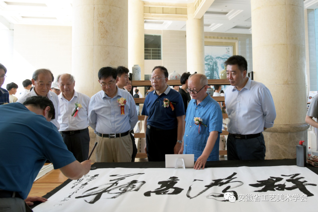 安徽省教育督导专员、合肥科技职业学院党委书记王庆山,安徽省工艺美术学会名誉理事长陶敬福,安徽省职业与成人教育学会会长李兴旺,原安徽省科技馆馆长、安徽省工艺美术学会副理事长闫光亚,安徽省合一美术馆馆长、安徽省工艺美术学会副理事长张为民,原阜阳师范大学艺术学院院长、安徽省工艺美术学会监事长江河,安徽省经信厅消费品处调研员张虎等省市、行业领导、嘉宾及合肥科技职业学院师生代表出席活动。活动由合肥科技职业学院党委副书记、常务副院长王彬主持。