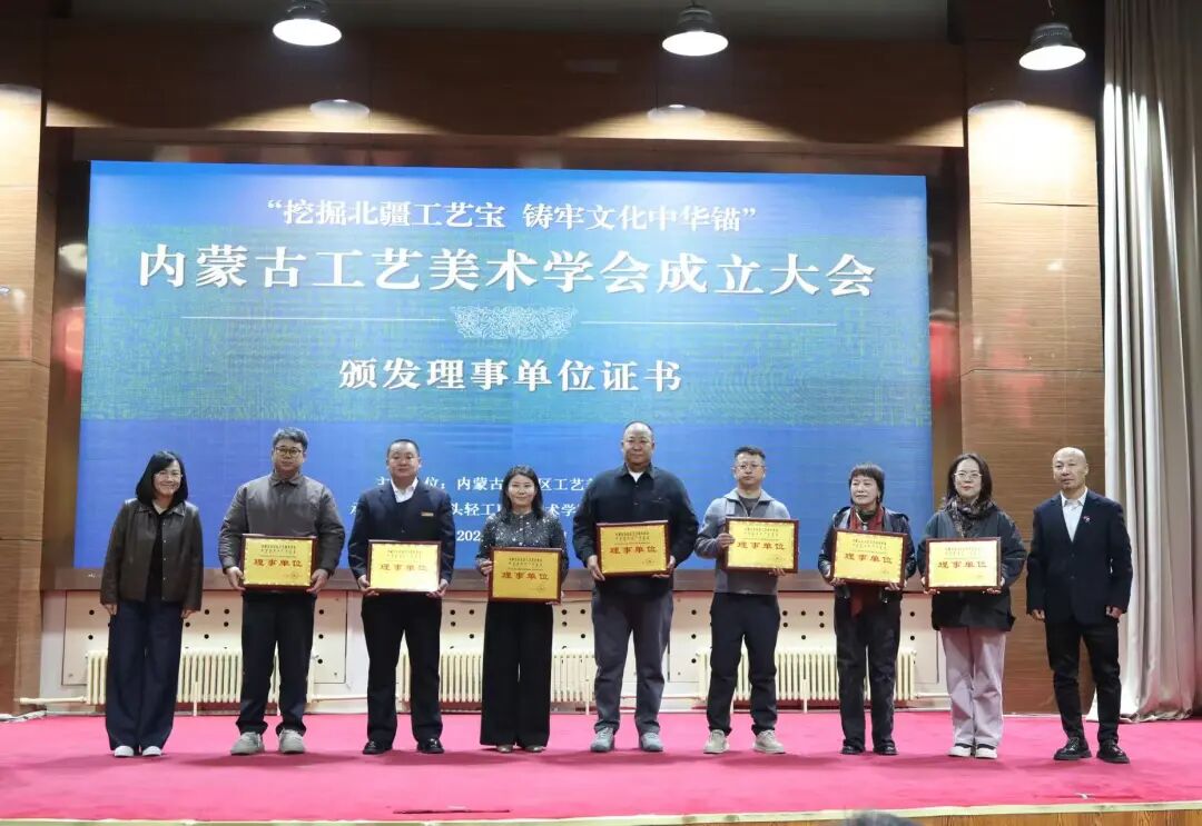 颁发首届内蒙古自治区工艺美术学会理事单位证书。