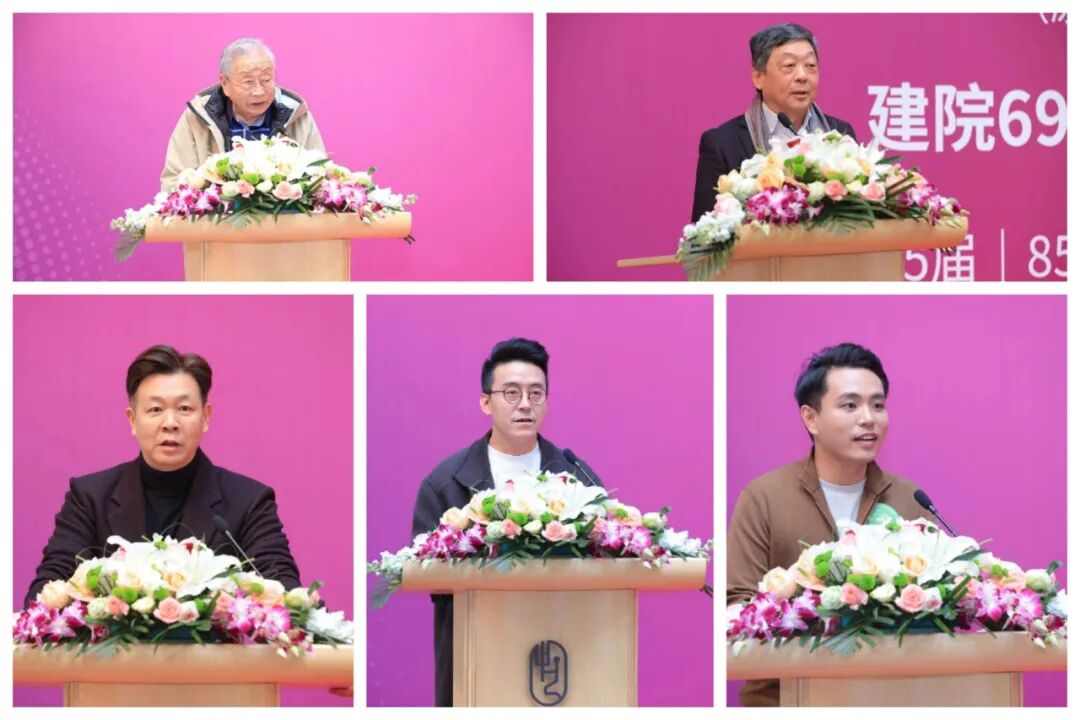 秩年校友黄报之(1965届),宿利群(1985届)、冯海(1995届)、侯利业(2005届)、许德豪(2015届)分别代表毕业六十年、四十年、三十年、二十年和十年的秩年校友上台发言。五位校友的发言,串联起了学院跨越时光的动人篇章。他们共同追忆了在校求学的难忘时光,分享各自在艺术道路上成长的感悟与坚持,字里行间无不流露出对母校精心培育的感恩之心,以及对恩师们悉心指导的深深敬意。这些真挚的讲述汇成一股暖流,充满对青葱岁月的怀念,对师友情谊的珍视,和对清华美院这个精神家园最深沉的眷恋与热爱。