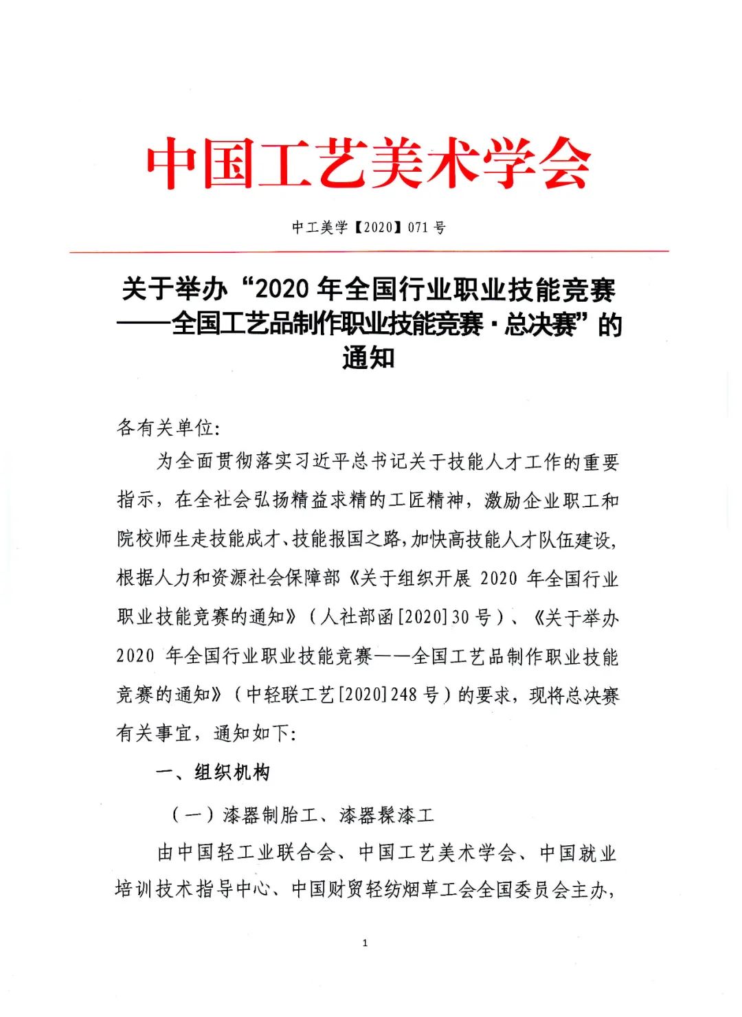 关于举办“2020年全国行业职业技能竞赛——全国工艺品制作职业技能竞赛•总决赛”的通知