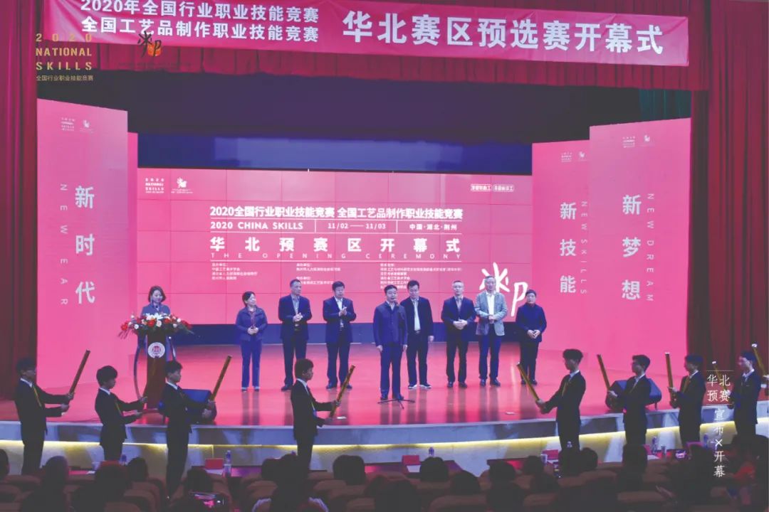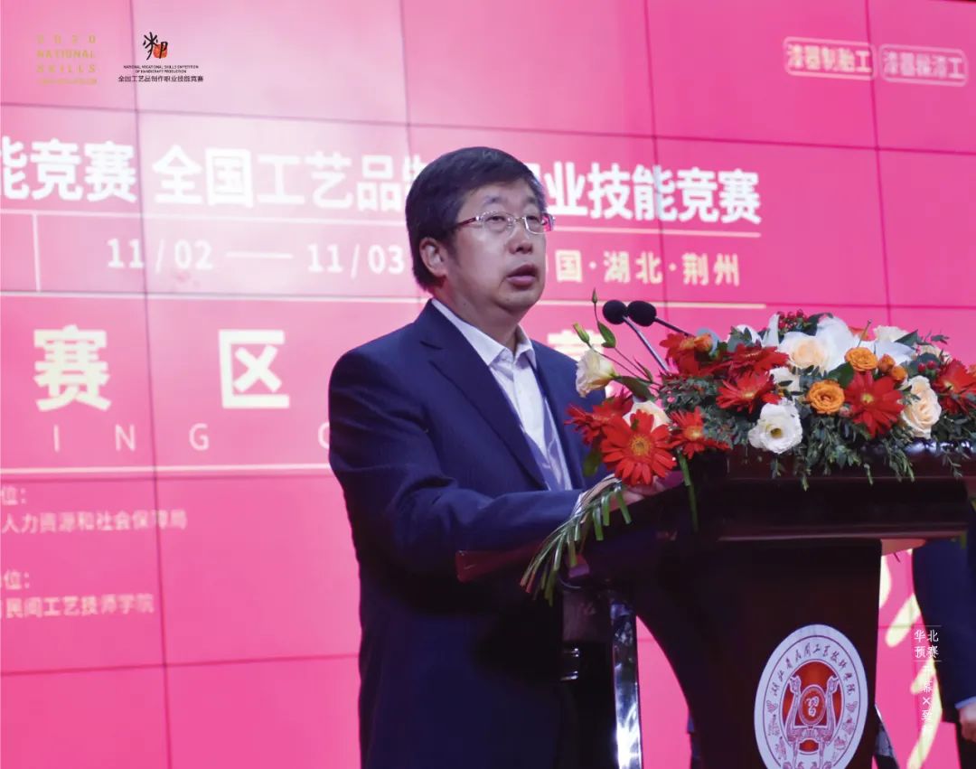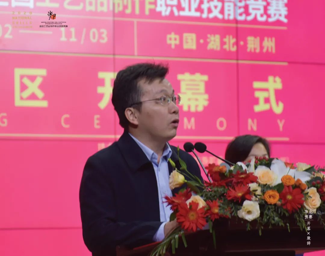 11月2日上午,中国工艺美术学会秘书长毛增印,湖北省人力资源和社会保障厅党组成员、副厅长曾向阳,荆州市委常委、市政府党组成员李水彬,湖北省民间工艺技师学院院长许小兰,湖北省工艺美术协会理事长范国忠以及相关专家和参赛选手等上百人出席了华北预赛区开幕式。曾向阳副厅长代表华北预赛区组委会宣布竞赛开幕。