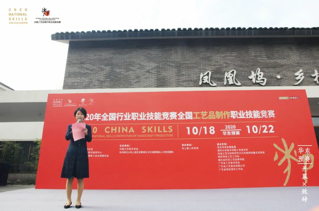 以“新时代 新技能 新梦想”为主题的2020年全国行业职业技能竞赛——全国工艺品制作(漆器制胎工、漆器髹漆工)职业技能竞赛·华东预赛,于10月19日-22日在浙江省杭州市河上镇举办。中国工艺美术学会副理事长黄小明、副秘书长王晓琦,华东师范大学上海艺术管理与文化创新紧缺人才培养基地主任徐中锋,河上镇人大主席孙玲玲、副镇长郭莹出席了此次活动。