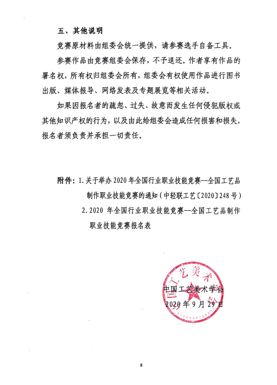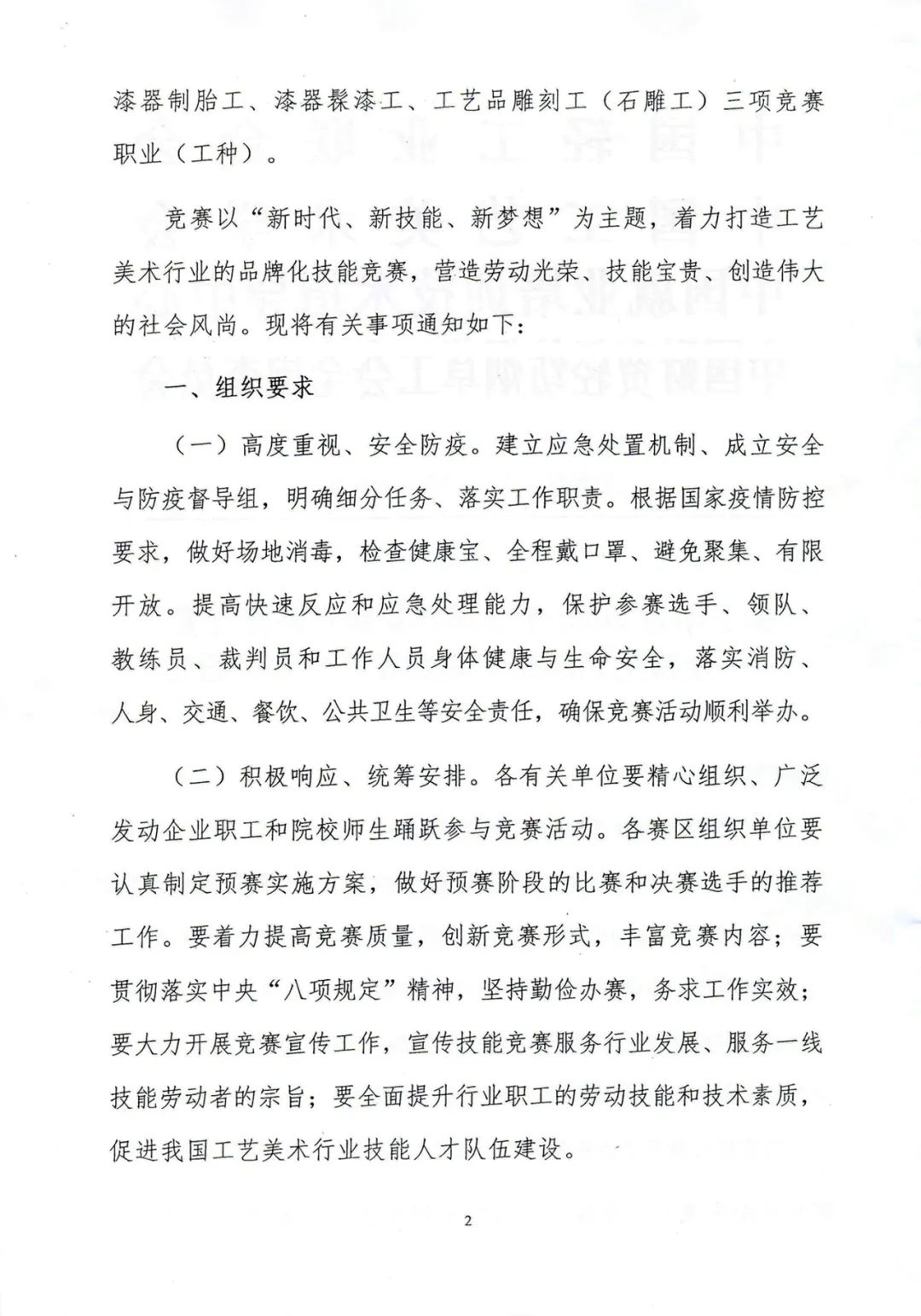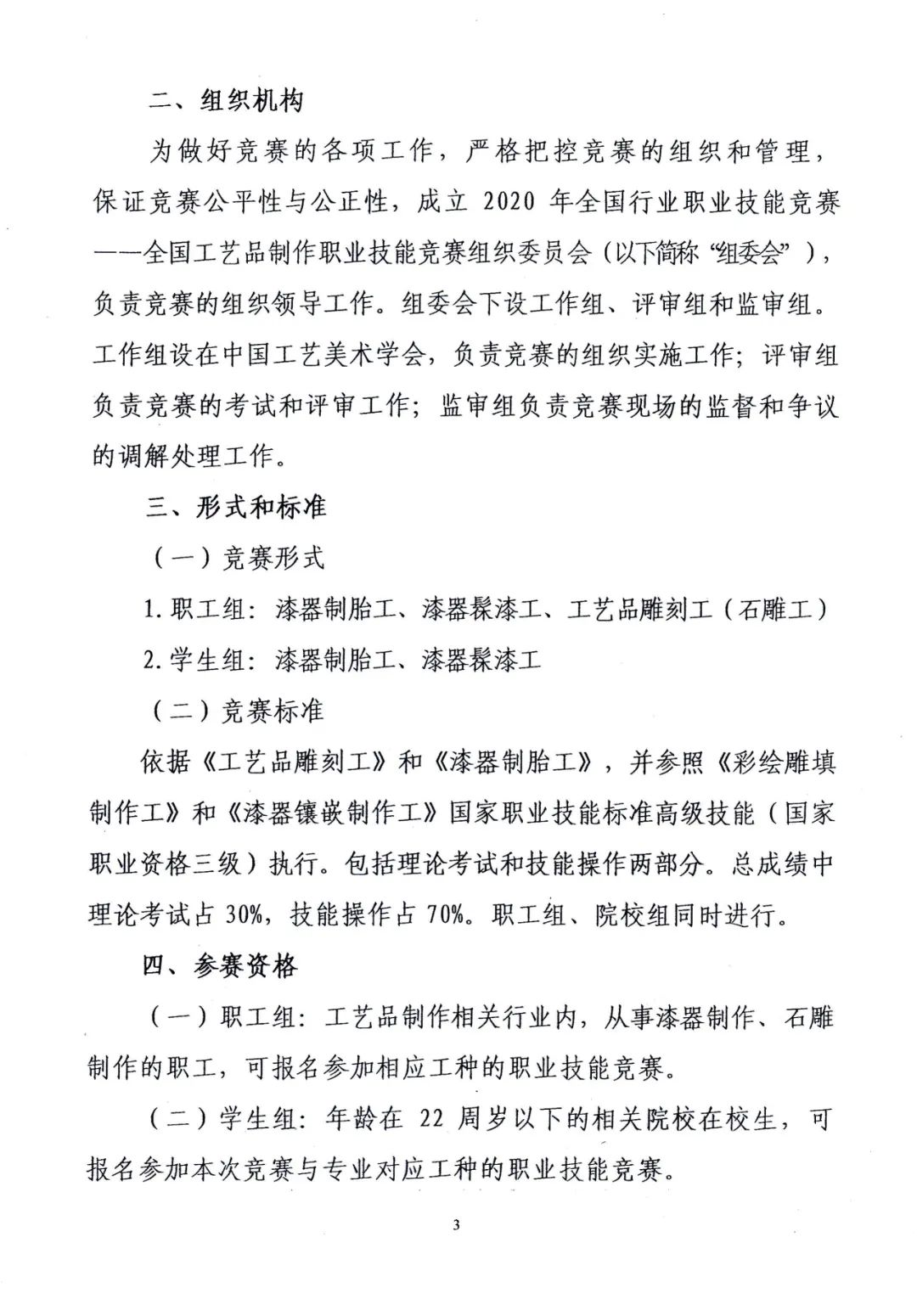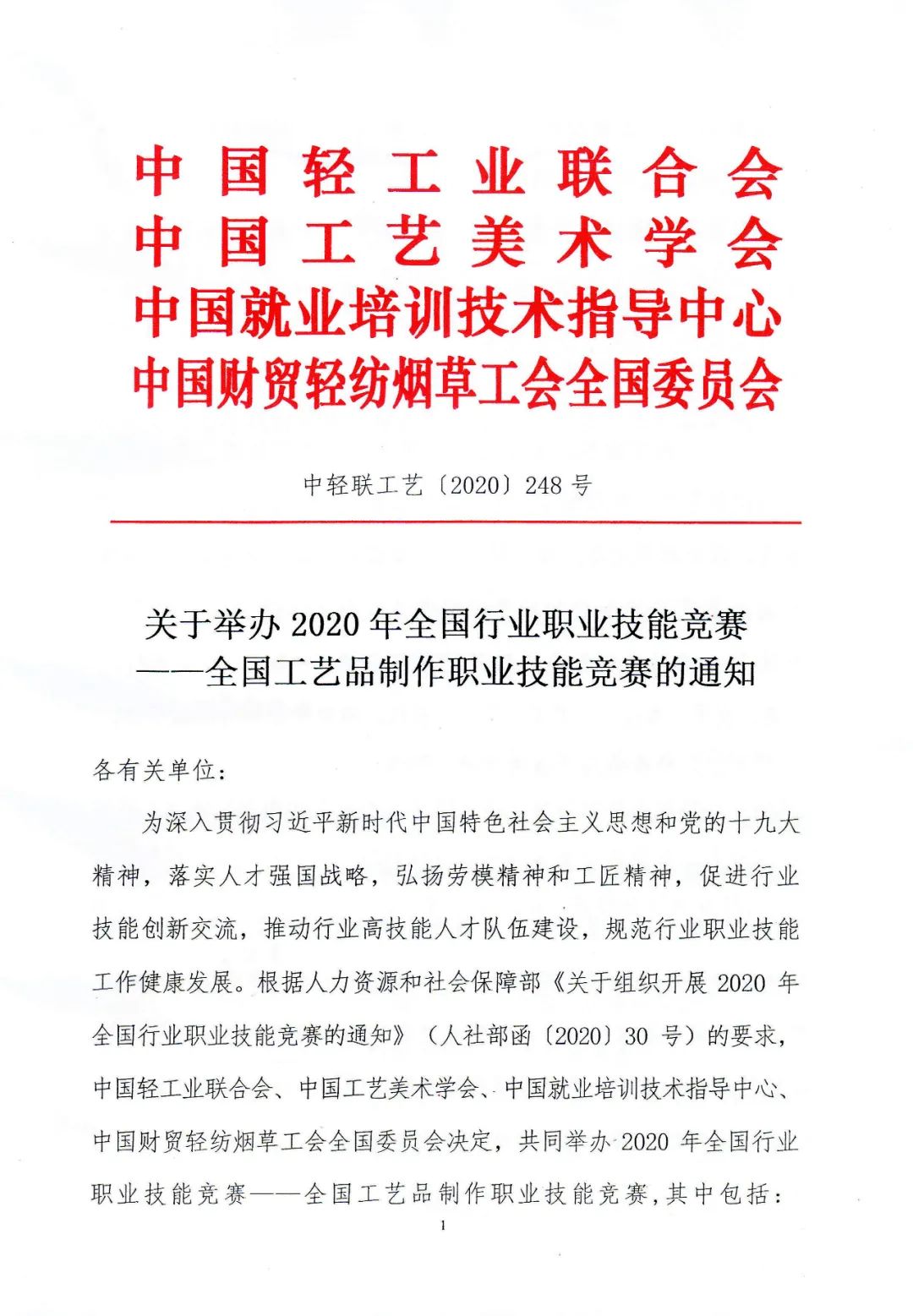 关于组织“2020年全国行业职业技能竞赛——全国工艺品制作职业技能竞赛”的通知