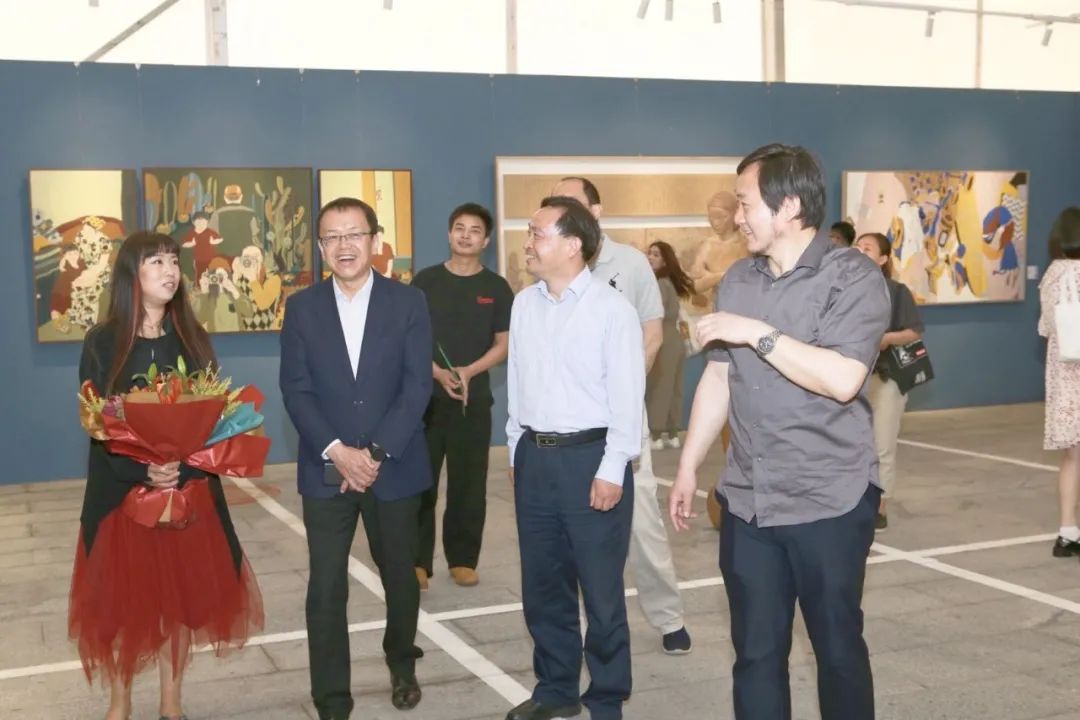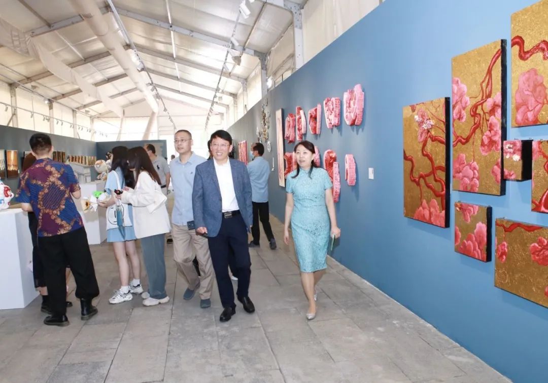 北京建筑大学党委书记姜泽廷(中)、北服党委书记周志军(右一)观展