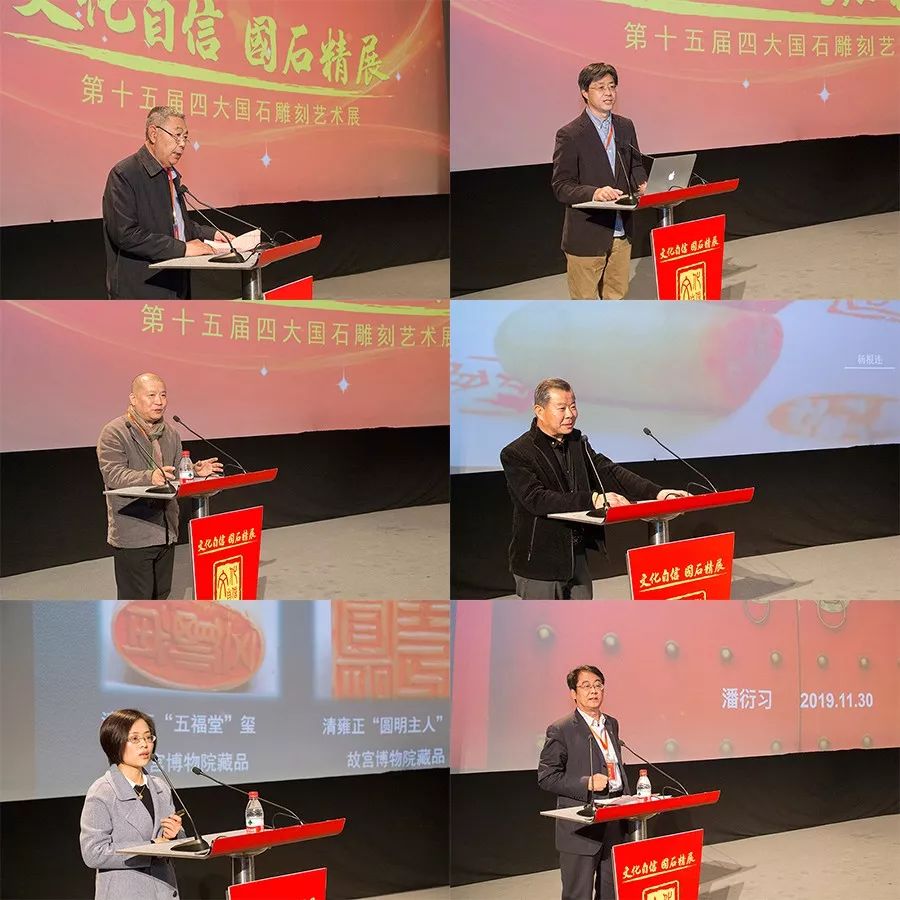 当天下午的四大国石文化论坛讲座邀请了中国书法家协会理事、中国国家画院研究员张公者,荣宝斋书法院院长、《艺术品》期刊主编王登科,中国工艺美术大师杨根连,中国地质博物馆工程师彭艳菊,中国书画收藏家协会副会长潘衍习等众多嘉宾。