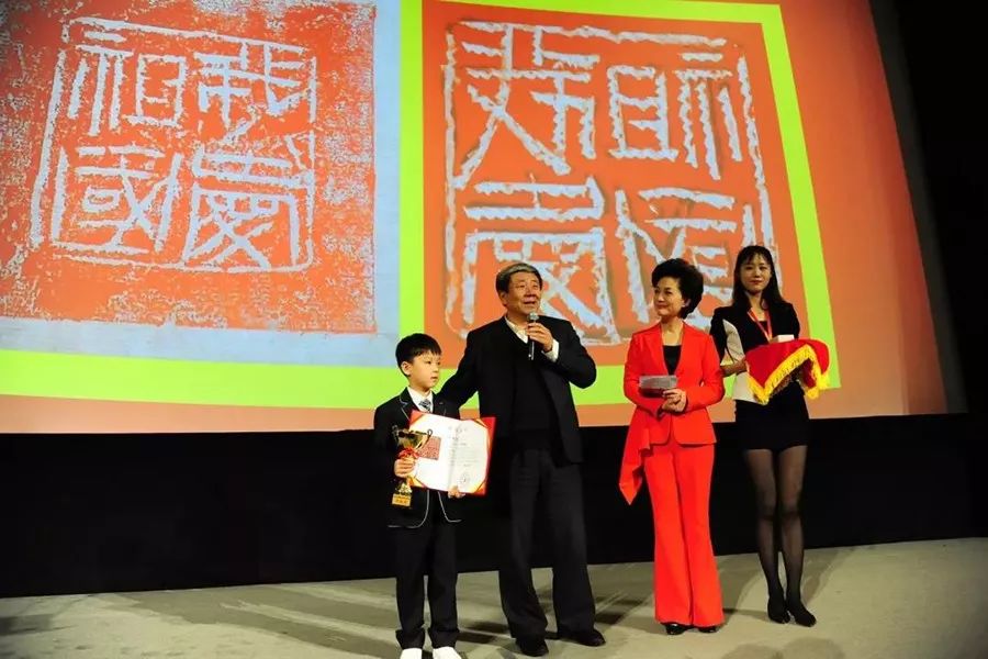 除了80岁高龄的韩天衡老先生,年仅7岁的陈轩逸小朋友也为展览敬献了一方名为“我爱祖国”的巴林石印章。小小年纪能够对传统文化感兴趣,并静下心来学习篆刻技艺是一件非常难能可贵的事,这一瞬间,我们仿佛看到了国石文化的薪火相传。