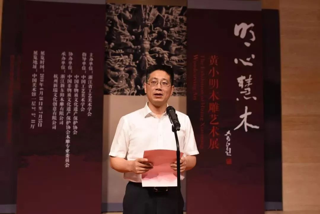 6月20日, 由浙江省工艺美术学会主办,中国工艺美术学会、中国非物质文化遗产保护协会指导,“明心慧木——黄小明木雕艺术展”在中国美术馆隆重开幕。