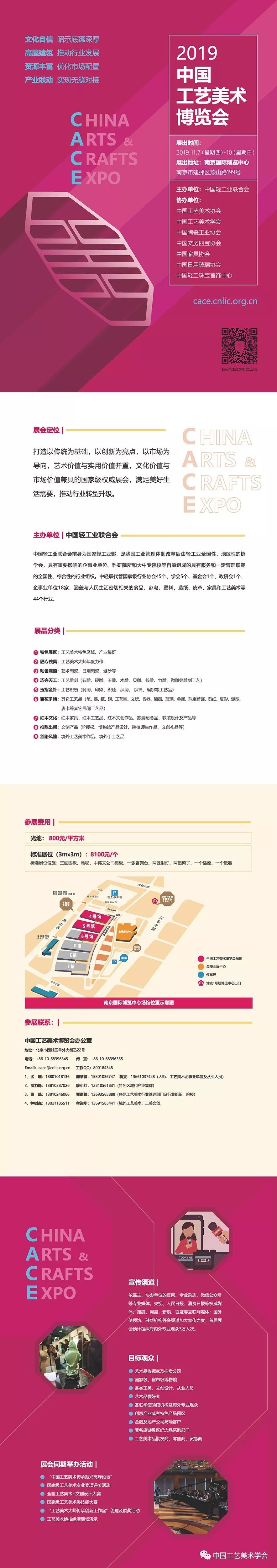 由中国轻工业联合会主办的中国工艺美术博览会将于2019年11月在南京举办