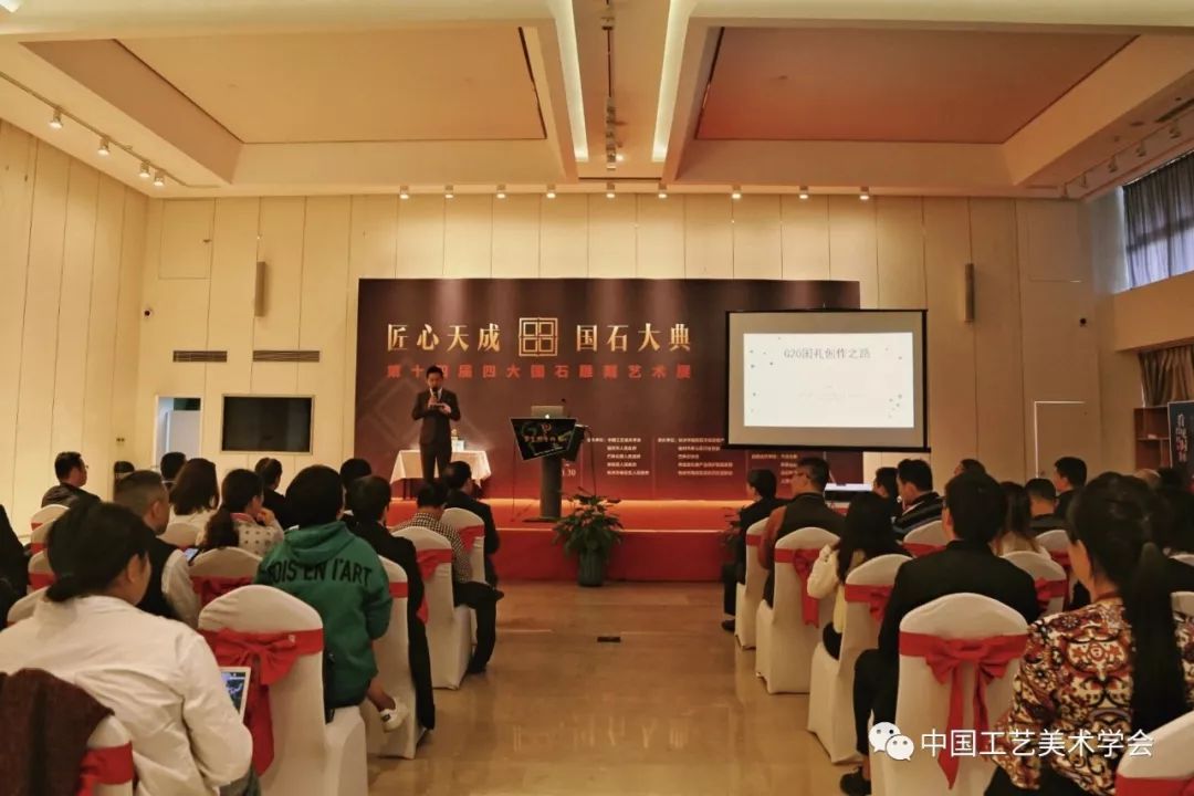 各位领导为第十四届四大国石雕刻艺术展启动开幕仪式。之后,三位受邀嘉宾同济大学人文学院艺术与文化产业系副主任夏洁秋,臻三环品牌负责人刘紫木,今日头条上海分公司市场公关总监李寅超,围绕“国石未来之路”的主题,分别从学术人才培养、匠人品牌发展、传统文化繁荣发展中的互联网传播等方面进行了分享,现场句句珠玑,赢得了如鸣的掌声。