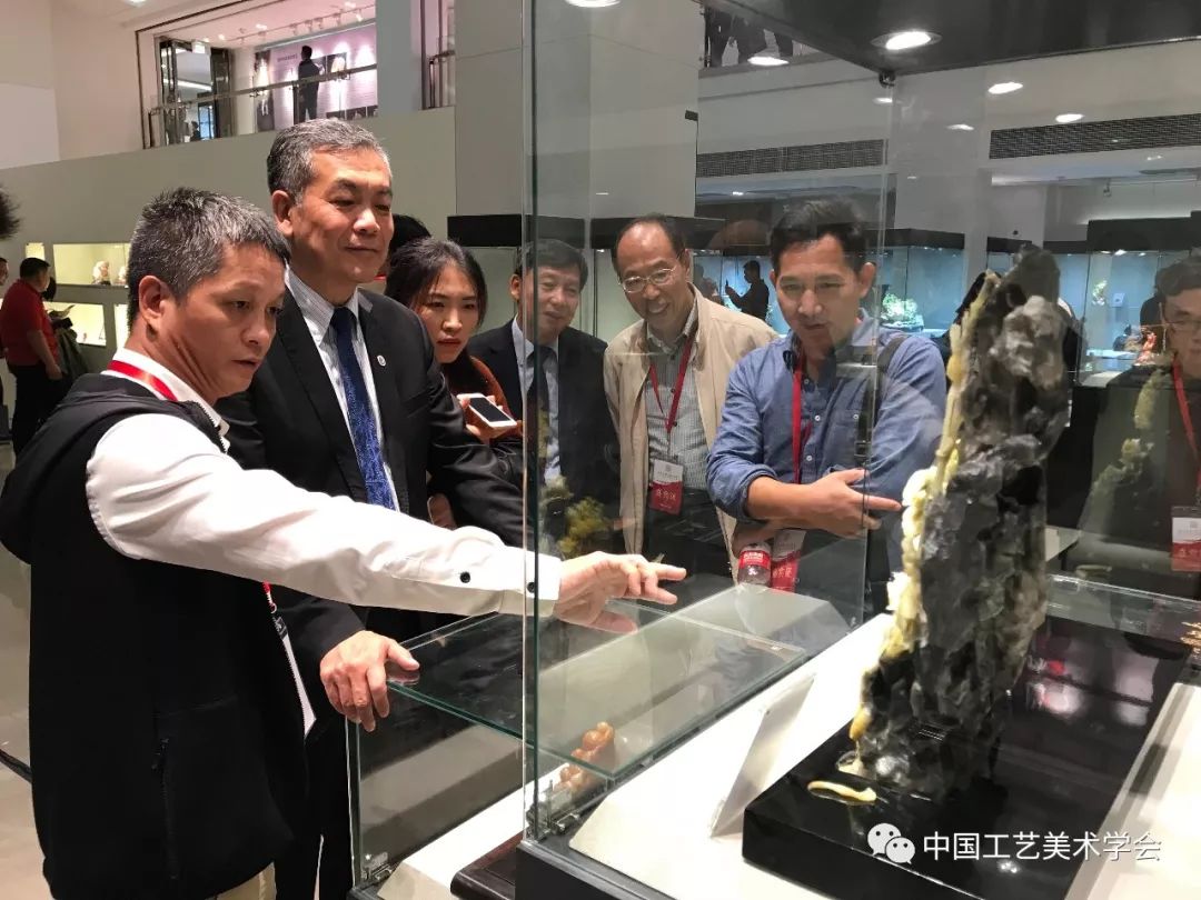 开幕式结束后,陶小年理事长与各位领导、嘉宾和各位大师一起参观了展览。参观期间,他向四大国石产区的相关负责人详细了解了产业发展现状以及从业人员的整体情况,同时表示希望能够集中各方面的力量,大力支持年轻工艺美术工作者发展创新,通过市场资源的融合和应用,进一步打造和提升每个地区的名石文化品牌,让四大国石走进年轻一代人的生活,让更多年轻人感受中国传统文化的魅力,更进一步的学习它,爱护它,保护它。