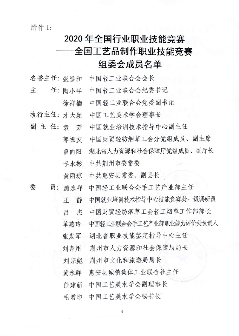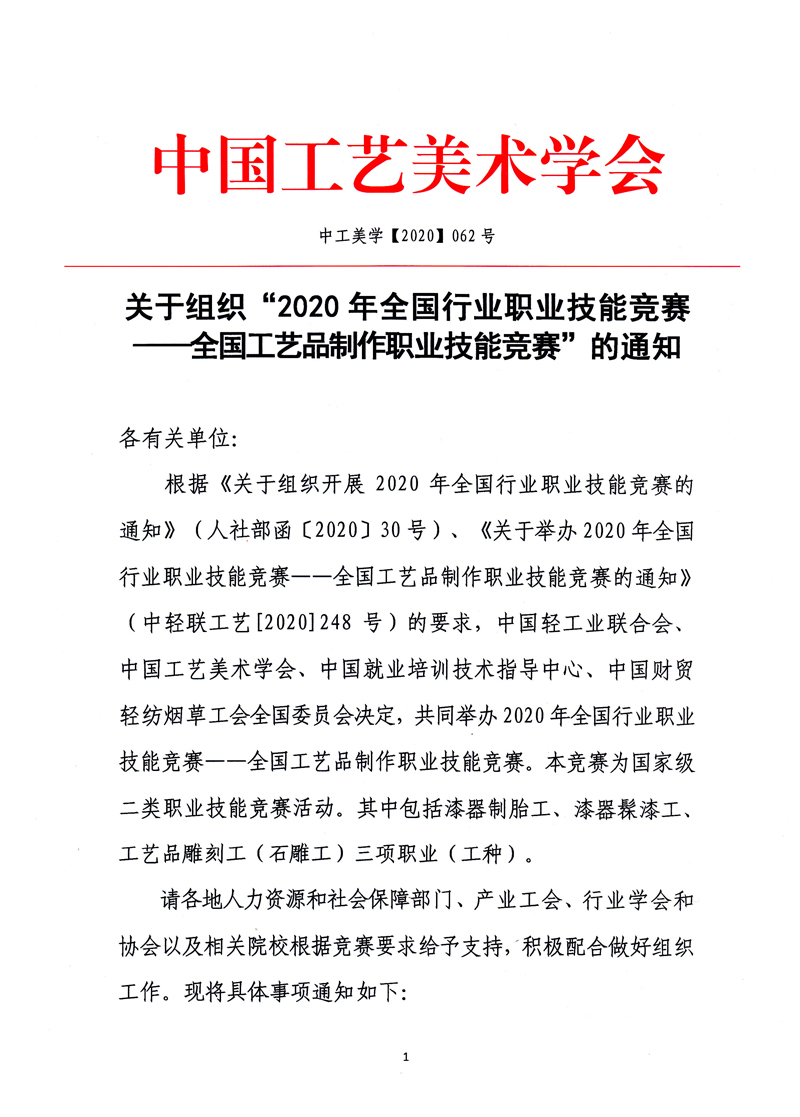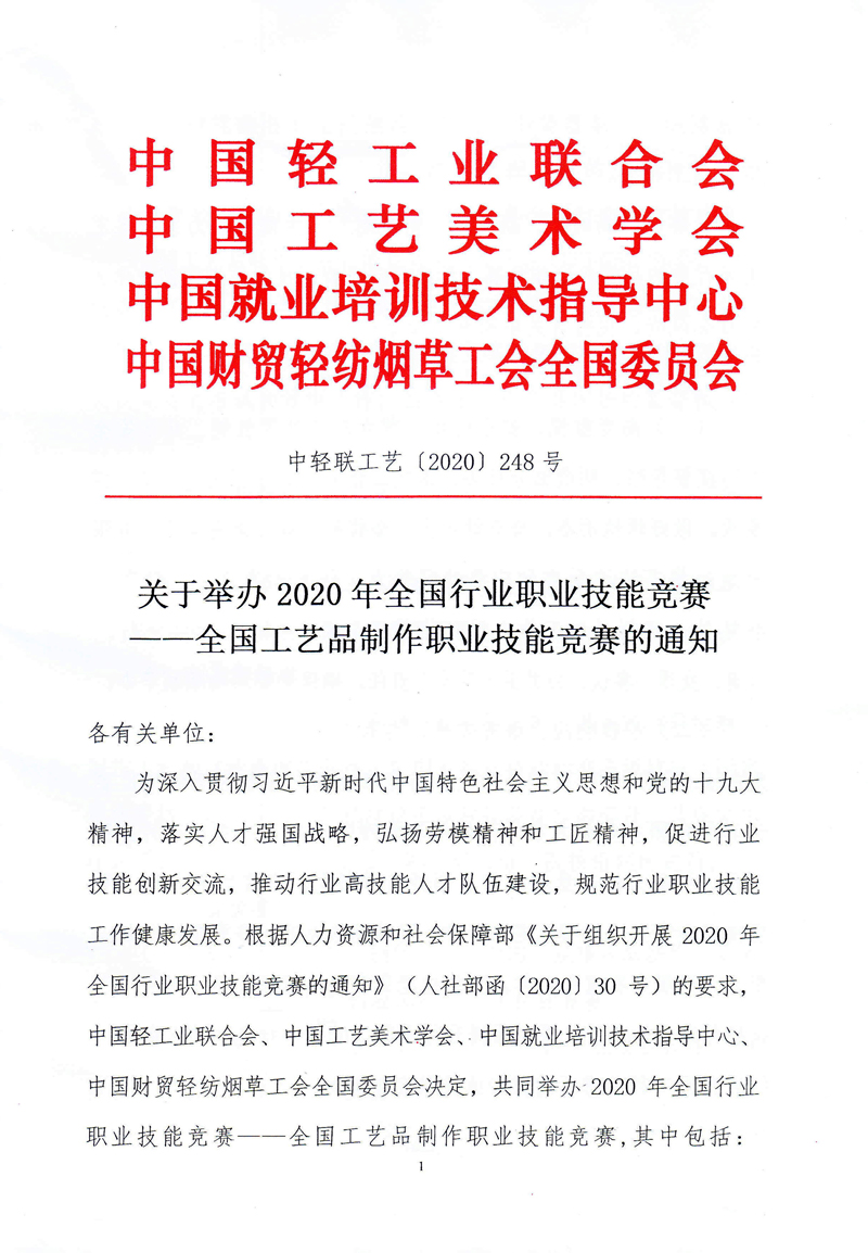 关于组织“2020年全国行业职业技能竞赛———全国工艺品制作职业技能竞赛”的通知