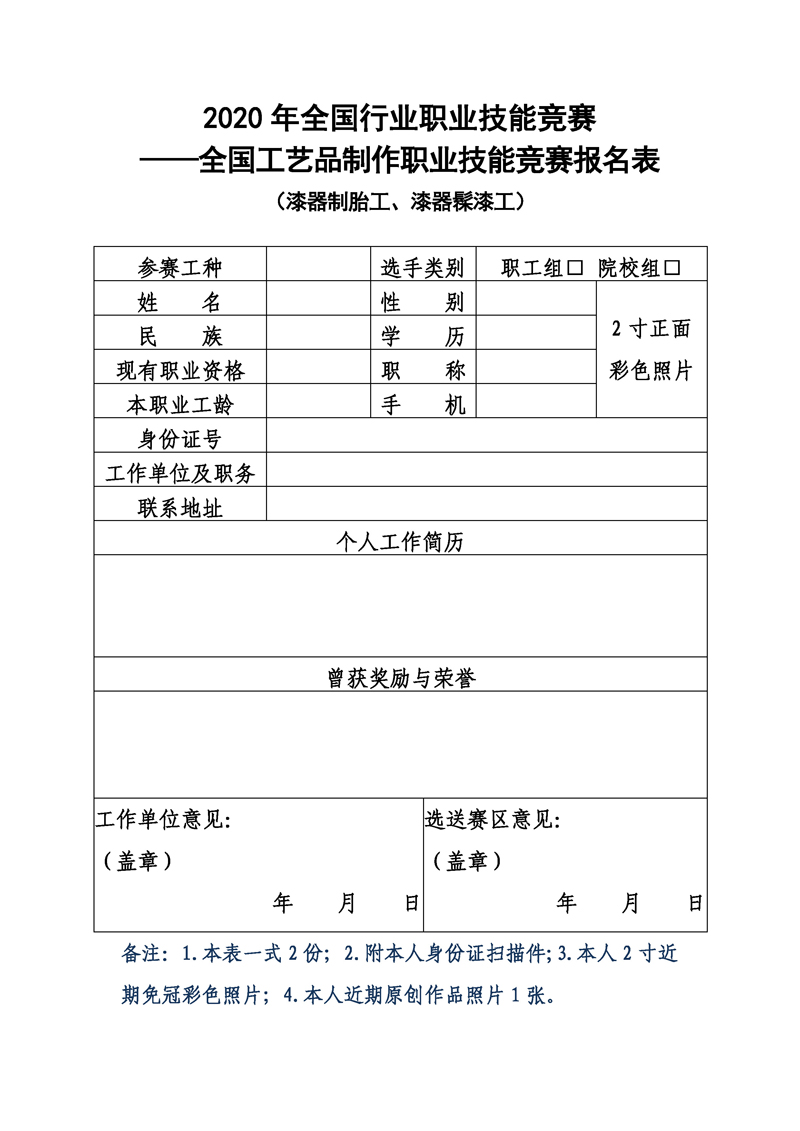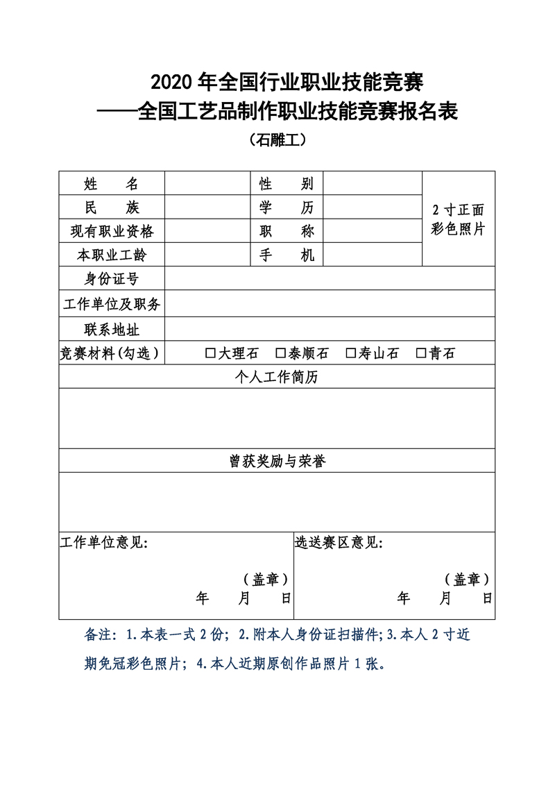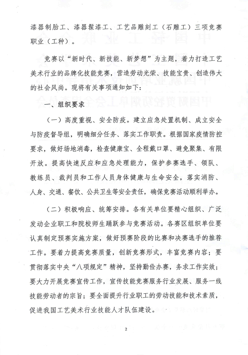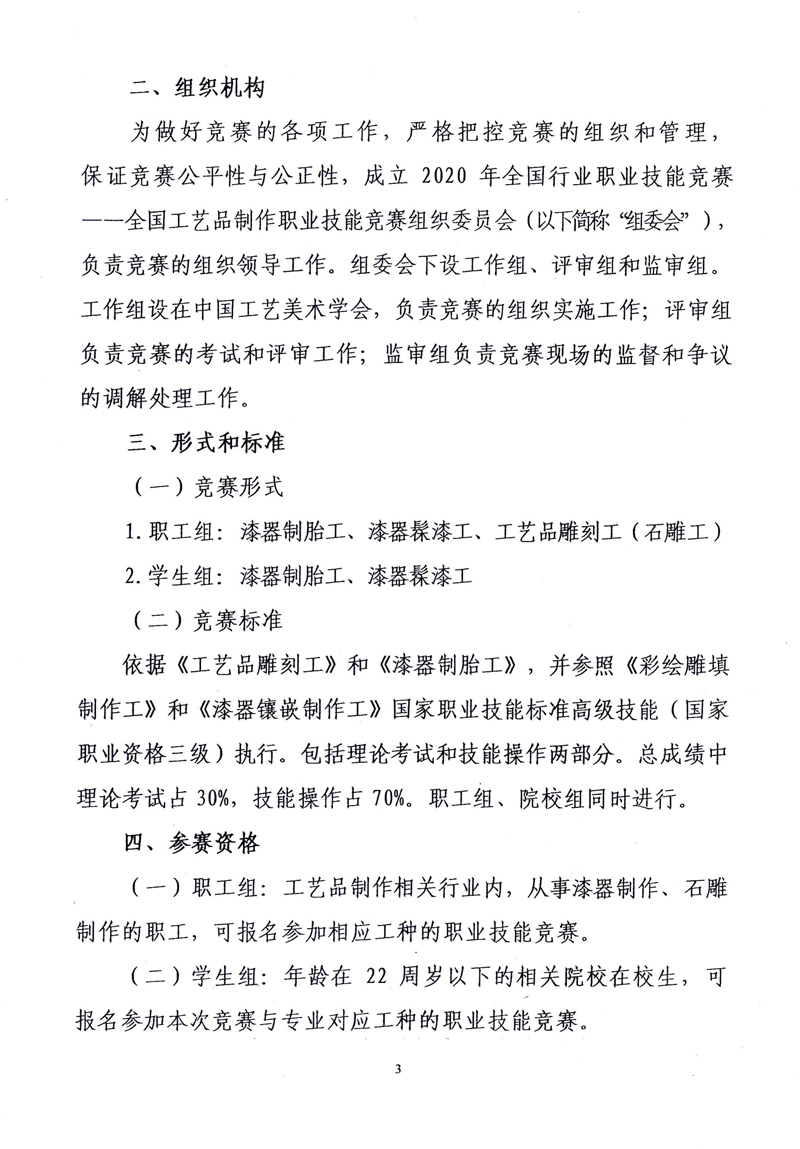 关于组织“2020年全国行业职业技能竞赛———全国工艺品制作职业技能竞赛”的通知